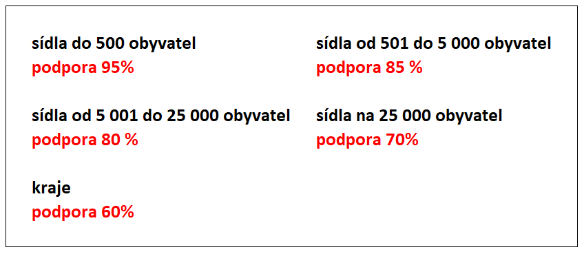 - o podporu mohou žádat obce, města a kraje ležící na území strukturálně postižených krajů a hospodářsky problémových regionů