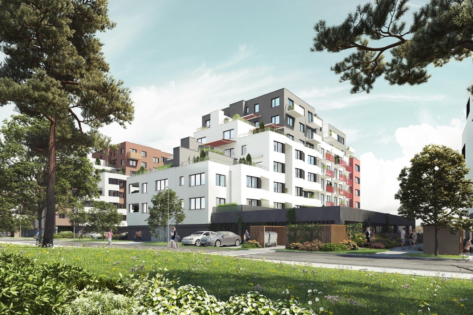 • parkovací stání v suterénu budov a další stání pro rezidenty