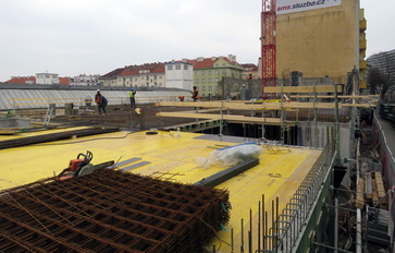 „Staveniště jsme převzali v červenci a na počátku září 2017 jsme zahájili zemní a výkopové práce. Zkraje prosince loňského roku se rozběhly práce na betonáži základové desky. V současné době se odlévají monolitické konstrukce stropu 1.NP a začínají se svislé konstrukce ve 2.NP. Máme dokončenu ražbu kanalizační přípojky včetně napojení na hlavní kanalizační řad. Stavba se zároveň pomalu připravuje na vyzdívky ve druhém podzemním podlaží. Železobetonová monolitická konstrukce, kterou realizuje firma Terracon, by měla dosáhnout nejvyššího bodu 1. září 2018,“ informoval Ing. Martin Kratochvíl, projektový manažer PSJ.
