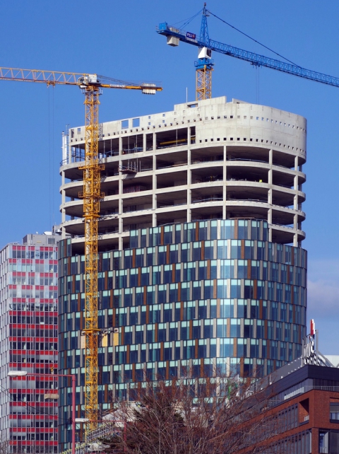 Součástí dodávky PSJ bylo provedení základové desky, dokončení střech spádovými betony pod hydroizolace. Zásadní rozsah samozřejmě tvořila realizace kompletní monolitické konstrukce. „Betonáž skeletu byla náročná zejména v úseku od 10. do 24. nadzemního podlaží, kdy jsme na každé patro měli s ohledem na termínový tlak pouhých 8 dnů. Těší nás, že se nám náročný harmonogram i za cenu nočních směn podařilo zvládnout. Díky tomu jsme eliminovali skluz, který stavba nabrala při zemních pracích,“ poskytl základní informace hlavní stavbyvedoucí Petr Smrž.