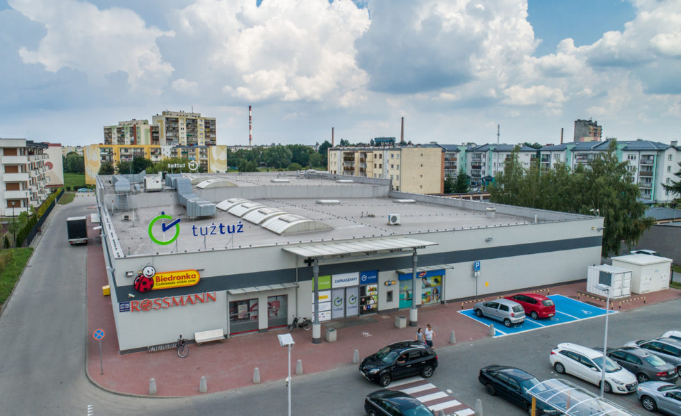První lokalitou, kde koncept TUŻ TUŻ našel uplatnění, je Piotrków Trybunalski. Centrum čistě maloobchodního charakteru s pronajímatelnou plochou asi 2 500 metrů čtverečních a téměř 100 parkovacími místy se nachází v rezidenční čtvrti, vedle třídy Wojska Polskiego. Nájemci by svými službami měli pokrýt především denní potřeby jeho nejbližšího sousedství. Součástí centra je supermarket – nabídku potravin nově zajišťuje prodejna značky Biedronka, dále se zde nachází drogerie Rossmann, zastoupení oblíbené značky Pepco, lékárna, květinářství, klenotnictví, trafika Inmedio nebo zverimex. Novým nájemcem TUŻ TUŻ Piotrków Trybunalski je také řetězec řeznictví Madej Wróbel. Projekt spravuje společnost Savills. Arcona plánuje v rebrandingu svého polského maloobchodního portfolia pokračovat dále v nadcházejících měsících.